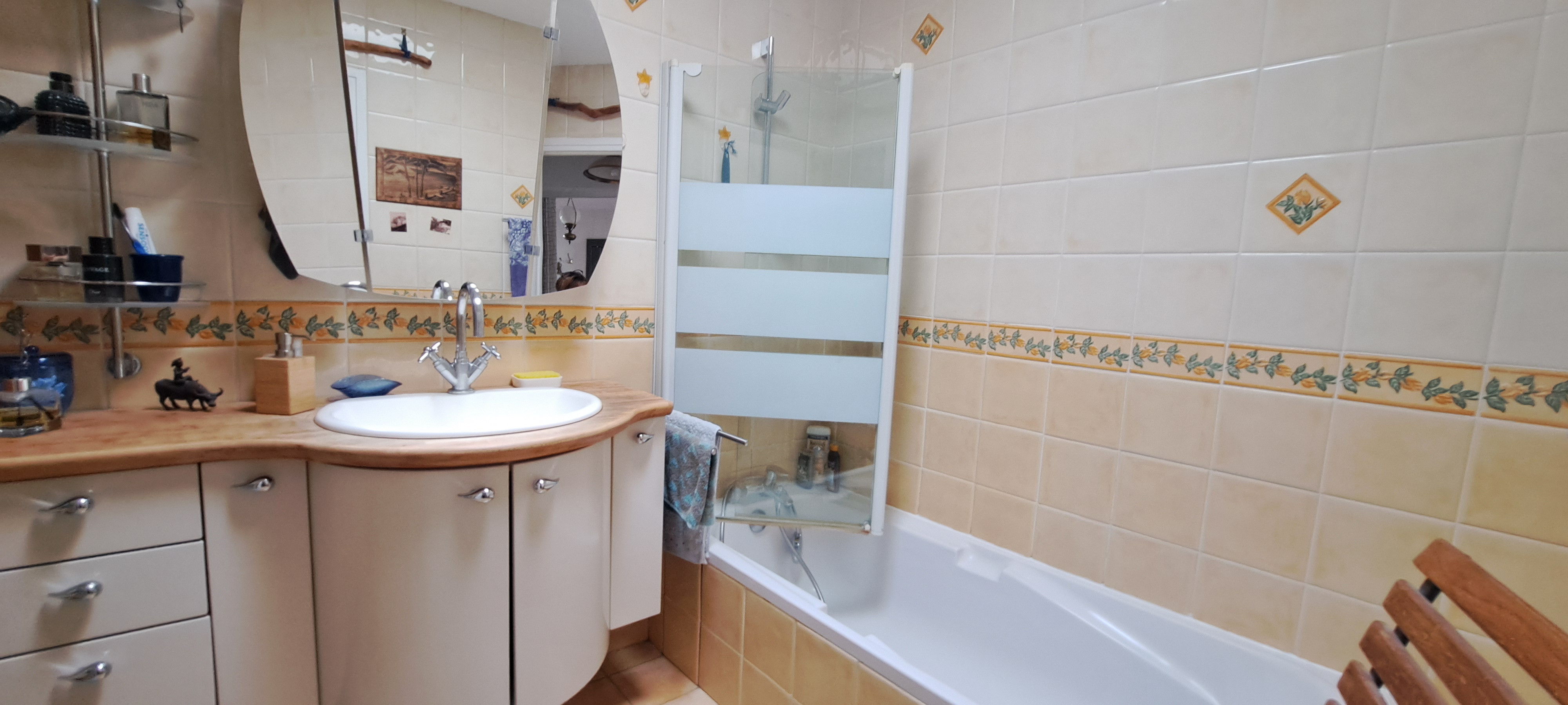 Huisseries double vitrage, volets roulants électrifiés, larges baies vitrées, porte blindée.