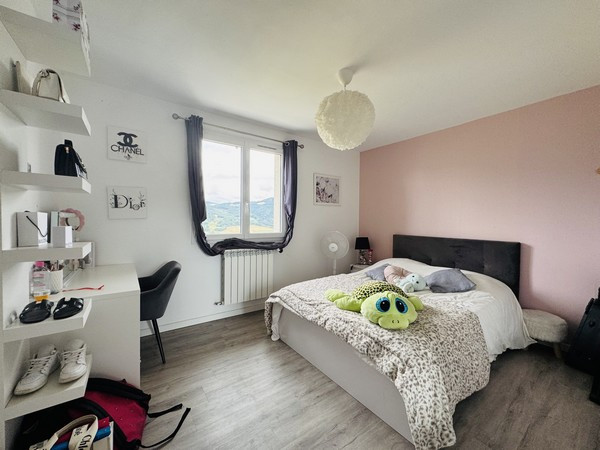 Séjour spacieux et lumineux grâce à 2 baies vitrées équipées de volets motorisés