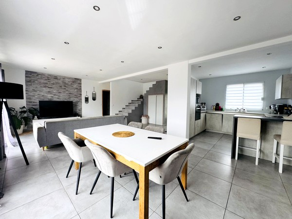 Découvrez cette maison de 125 m², construite en 2021, sur un terrain de 1233m² entièrement clos avec portails motorisés et interphone vidéo. Offrant un espace de vie moderne et fonctionnel, elle est idéale pour une famille à la recherche de confort et de tranquillité.