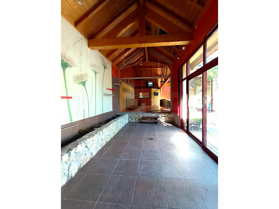 L'habitation se compose au 1er étage d'une très grande pièce de vie avec cuisine ouverte ( près de 95m2) et cheminée d'agrément . La cuisine est entièrement équipée.. Cette pièce offre une belle luminosité et une vue sur les montagnes grâce à une impressionnante baie vitrée en demi lune . Accès directe à la terrasse ,au jardin d'hiver et à la piscine intérieure .