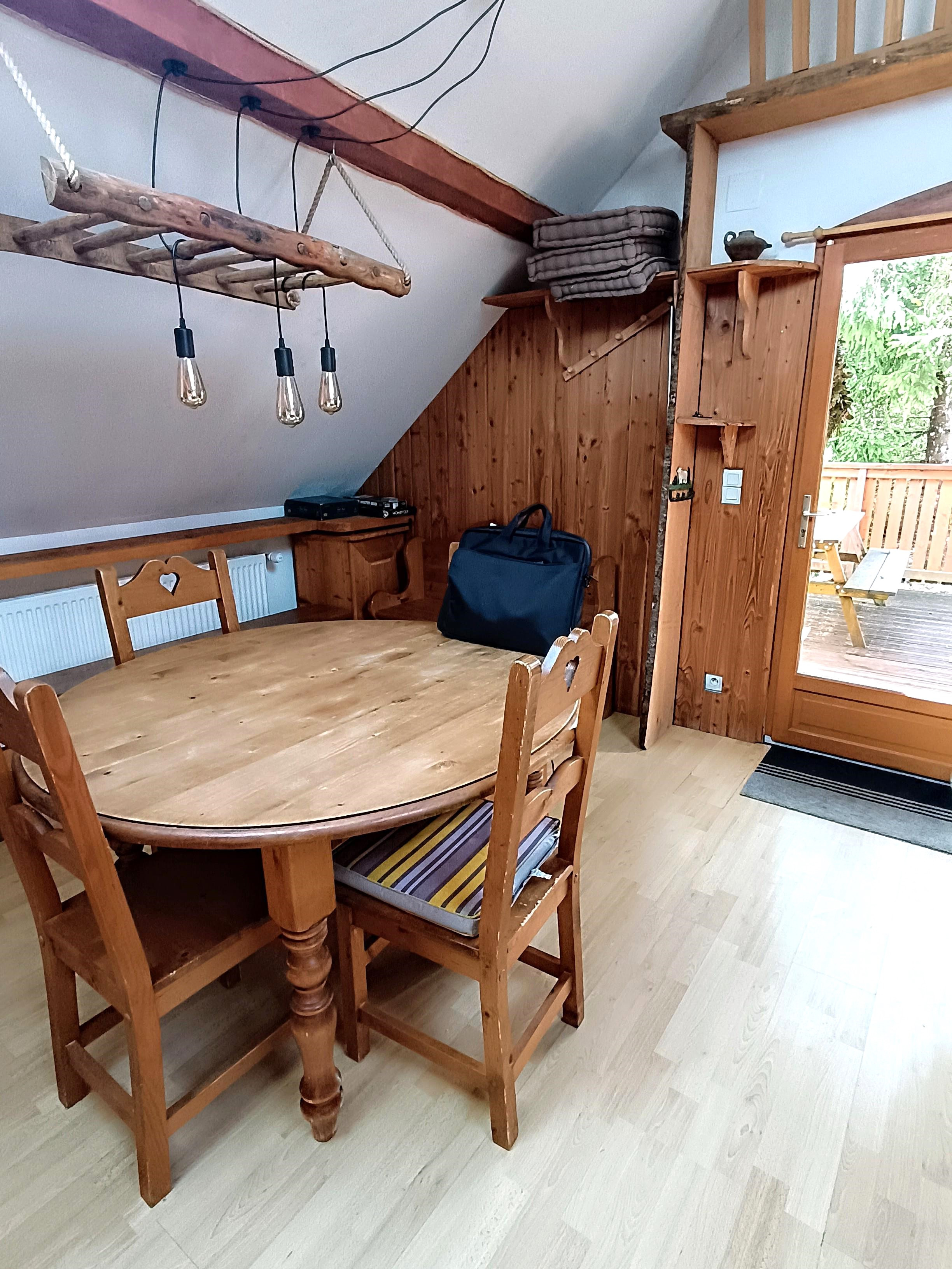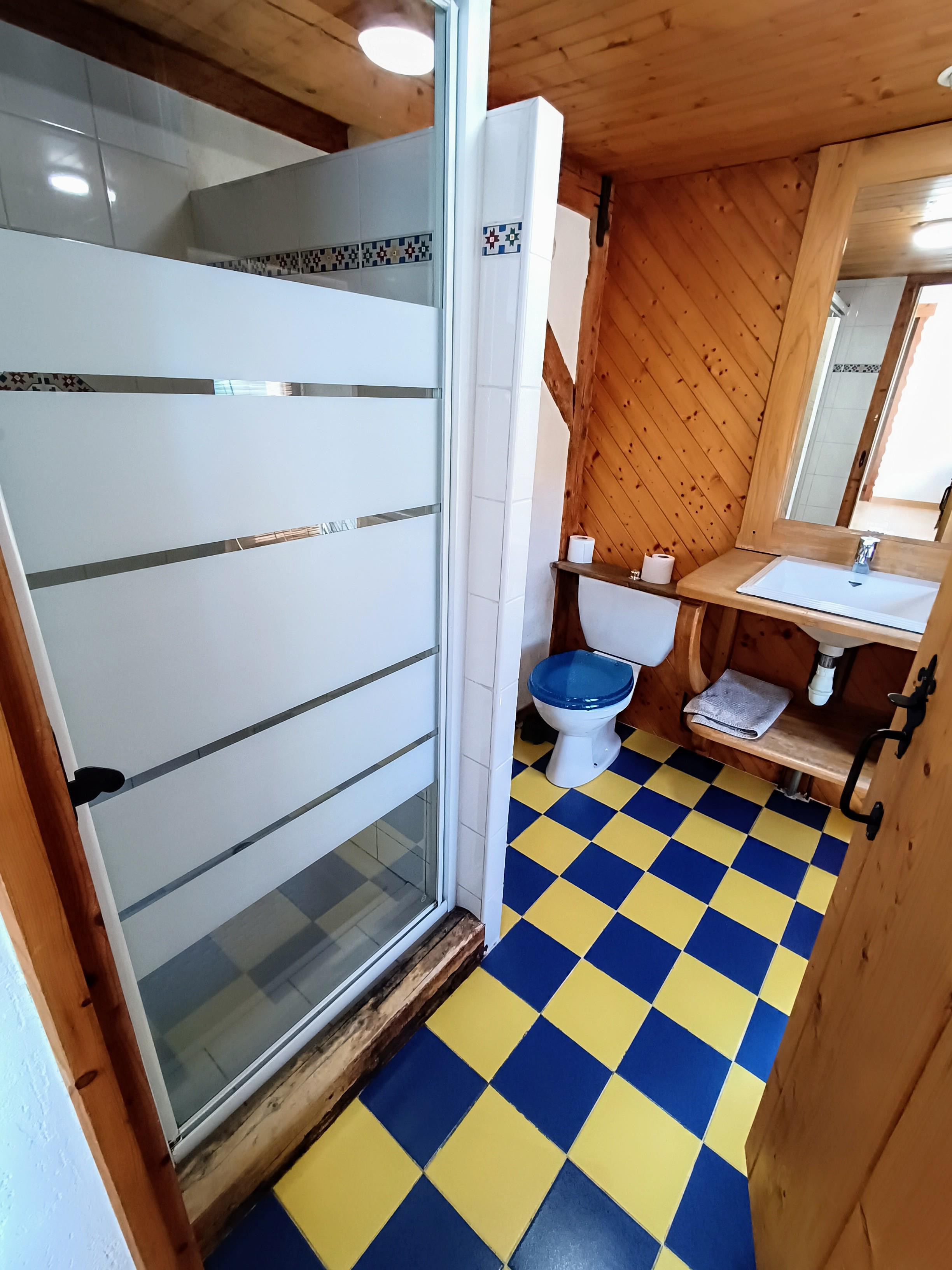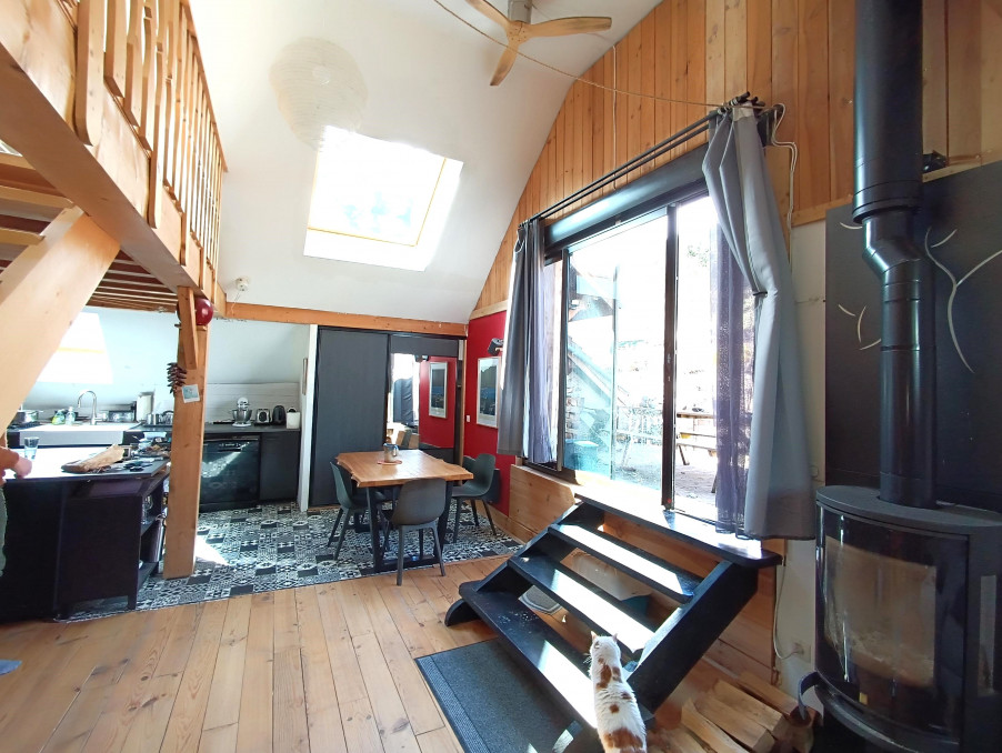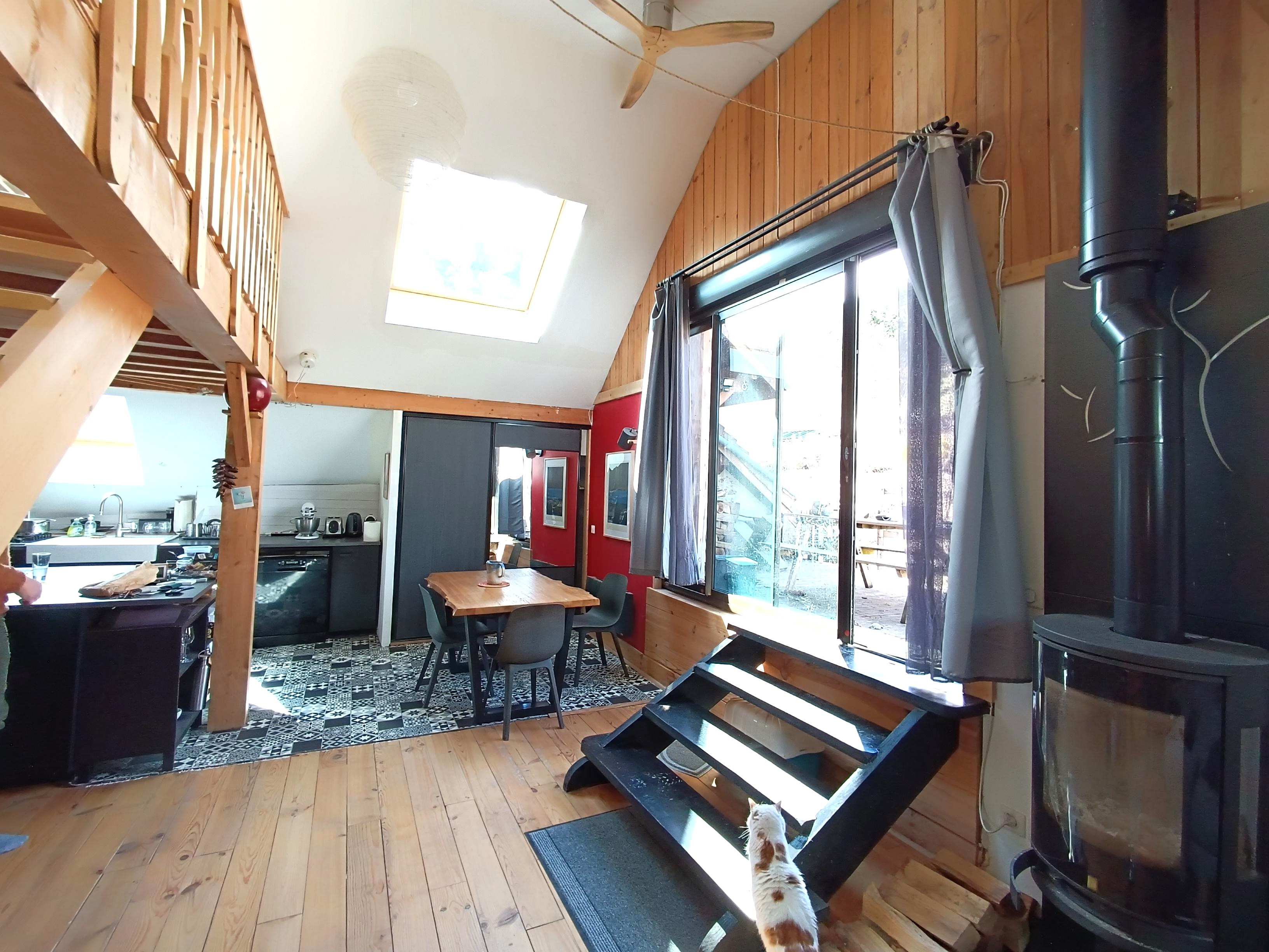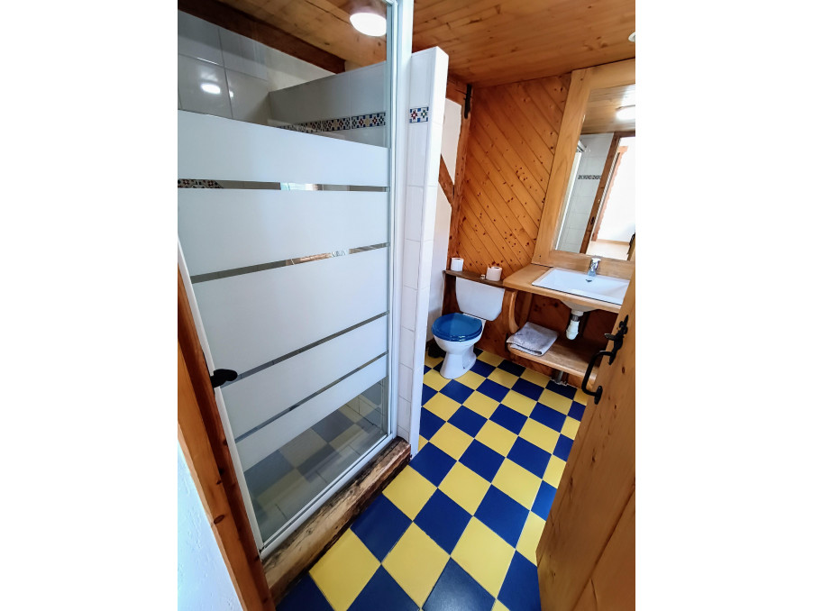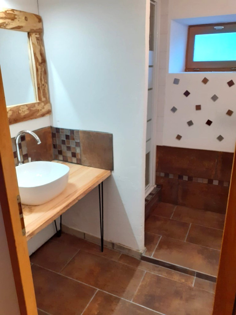 3- Gite d'environ 45m2 habitable ( 4/5 couchages ) avec séjour /cuisine chaleureux donnant sur terrasse en bois exposée Sud . Grande chambre ( 4 couchages) de près de 20m2 ,salle de douche et wc.