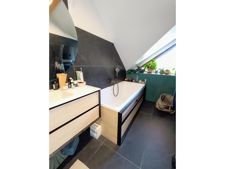 Pièce de vie de près de 40m2 lumineuse, avec cuisine ouverte et accès jardin. Grande pièce buanderie /dressing de plus de 21m2 .Wc.