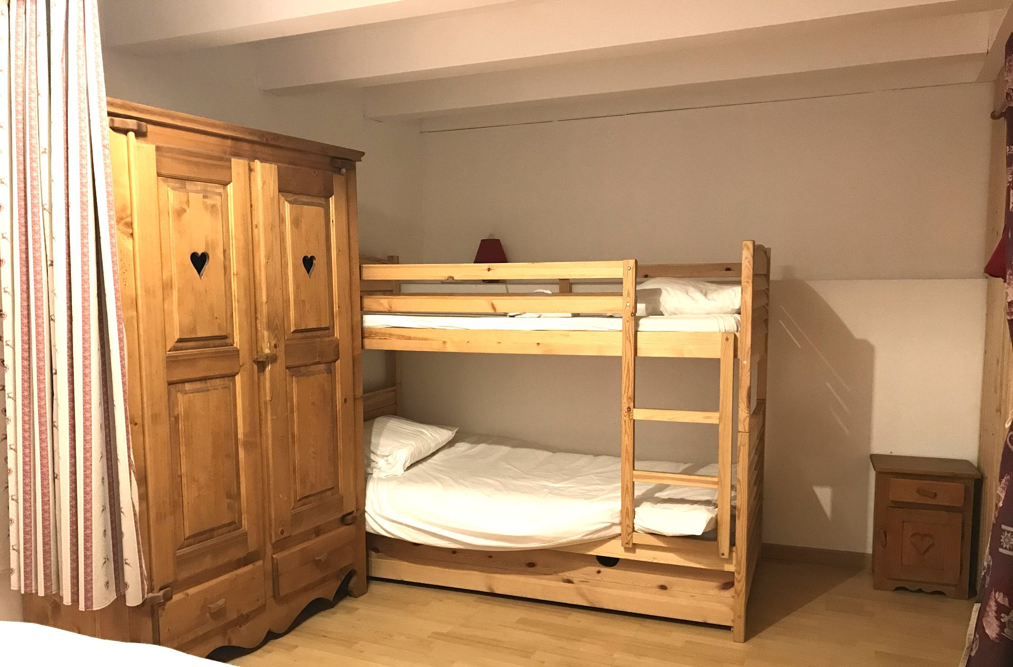 2- Bel appartement de plus de 101m2 (Capacité actuelle 6 couchages ) ,comprenant 2 belles chambres dont une suite avec dressing ,salle de bain /douche et wc séparé . 2ème chambre mansardée et grande mezzanine de 18 m2 avec lit 2 places et bureau .
