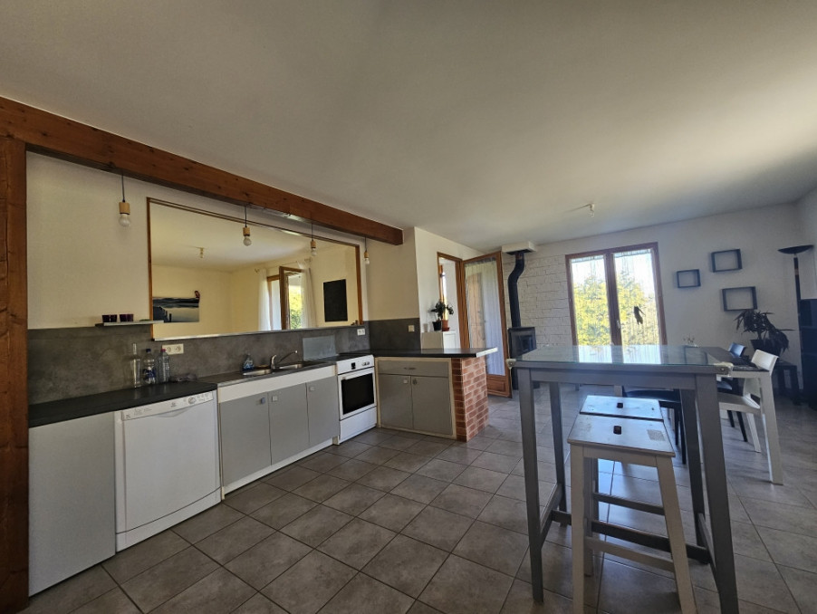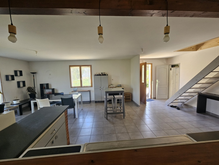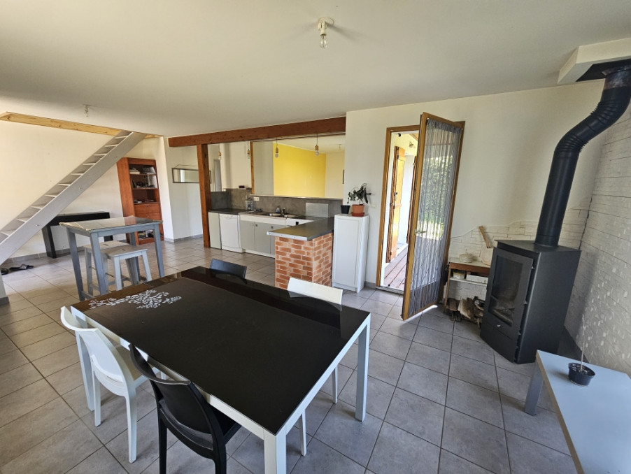 Composée au rdc d'une pièce de vie avec cuisine équipée 25m², salon 10m² ouvert sur cuisine avec poêle à bois tubé, un cellier buanderie, une chambre et une salle de bains avec baignoire + toilettes 4m².
