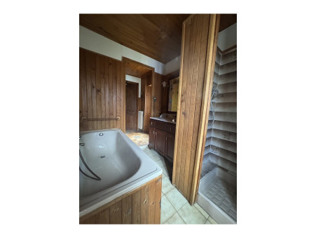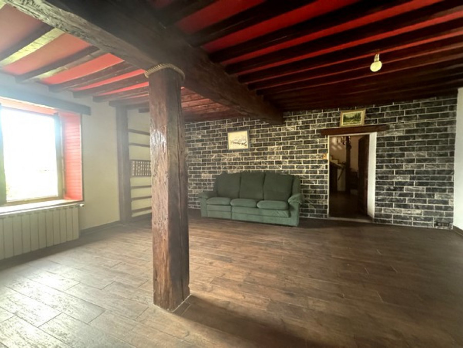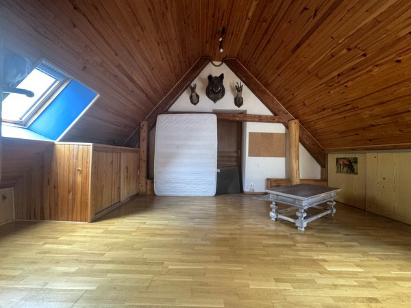Elle se compose au rez-de-chaussée de : deux caves, un atelier, une chaufferie, deux granges, trois chenils pour chiens et deux dépendances pour chevaux. Au premier étage, on trouve : une terrasse offrant une vue dégagée, un hall d'entrée, une cuisine équipée ouverte sur le séjour (avec poêle à bois) et la salle à manger, un dégagement (bureau), une chambre, une salle de bain et un WC séparé. Sous les combles, il y a une grande chambre et un grenier de 35m² selon la loi Carrez.