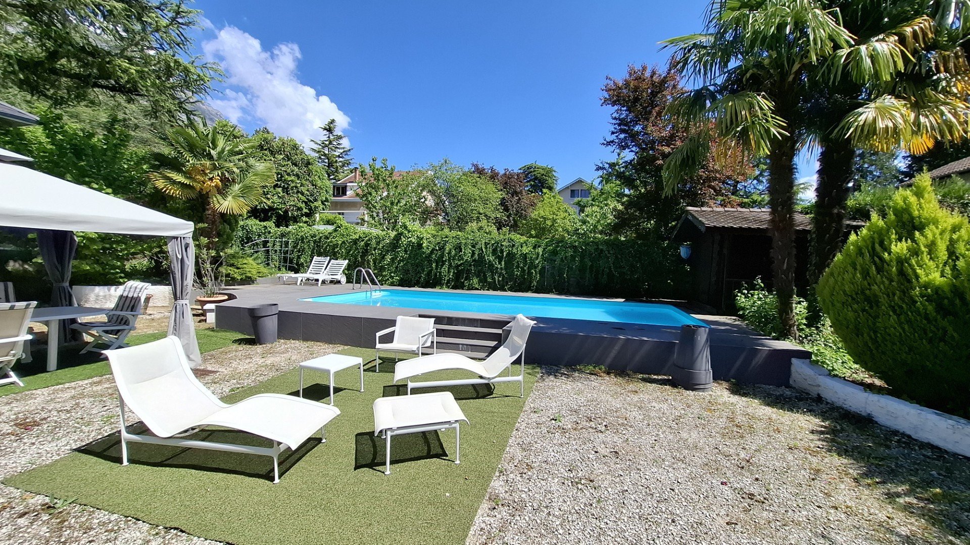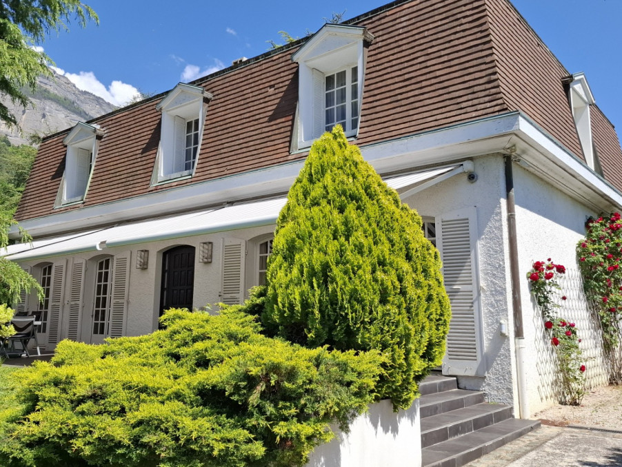 Espace Immo 38 - Stéphanie STOLTZ (o7 61 29 o1 41) et Gil PRAYER (o6 o8 33 83 51) vous proposent leur COUP DE COEUR, une belle villa de style Ile de France d'une superficie de 188 m2 sur un terrain clos et arboré de 829 m2 agrémenté d'une piscine avec vue sur la chaîne de Belledonne et de deux terrasses.