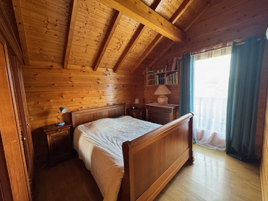 Frederic Hugard ( O6 3O 91 05 24 )vous propose ce chalet en mandrier sur 3953 m² de terrain arboré. Il se compose d'un sous bassement comprenant garage, cave, atelier. Au rez-de-chaussée : une cuisine ouverte sur une vaste pièce de vie, un wc, puis au 1er étage trois chambres et salle d'eau, wc. Vous pourrez profitez d'une vue exceptionnel depuis sa terrasse mais aussi d'un moment chaleureux auprès de son poêle bois.