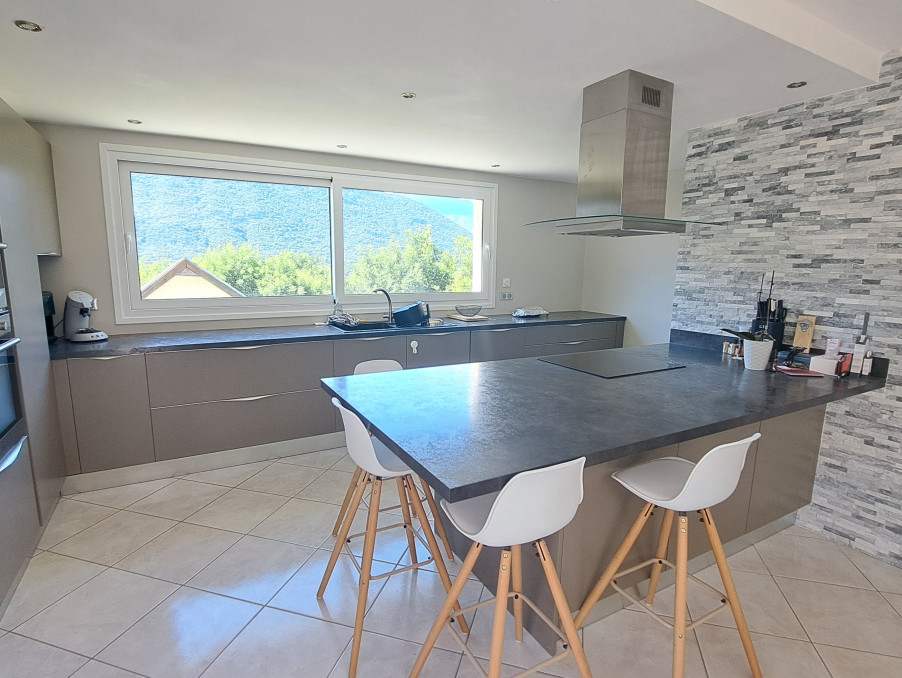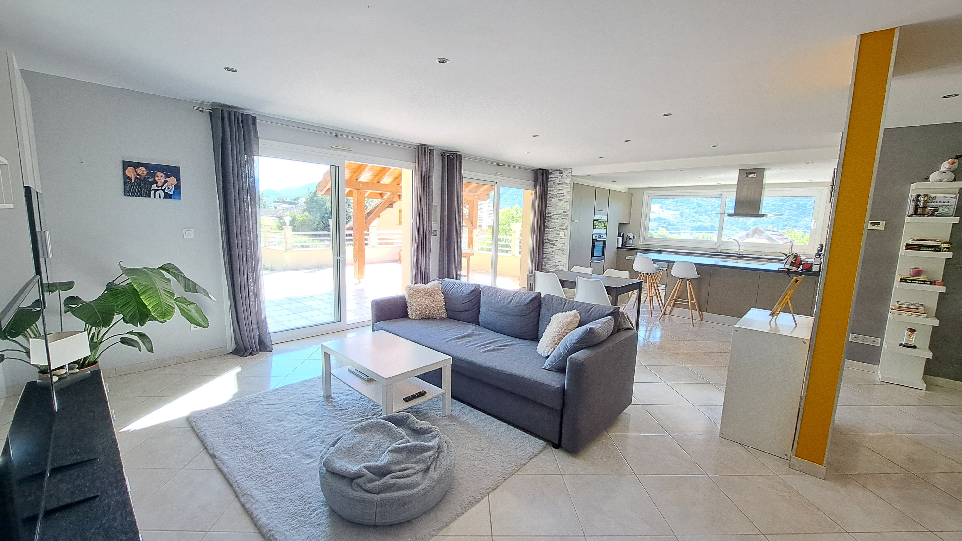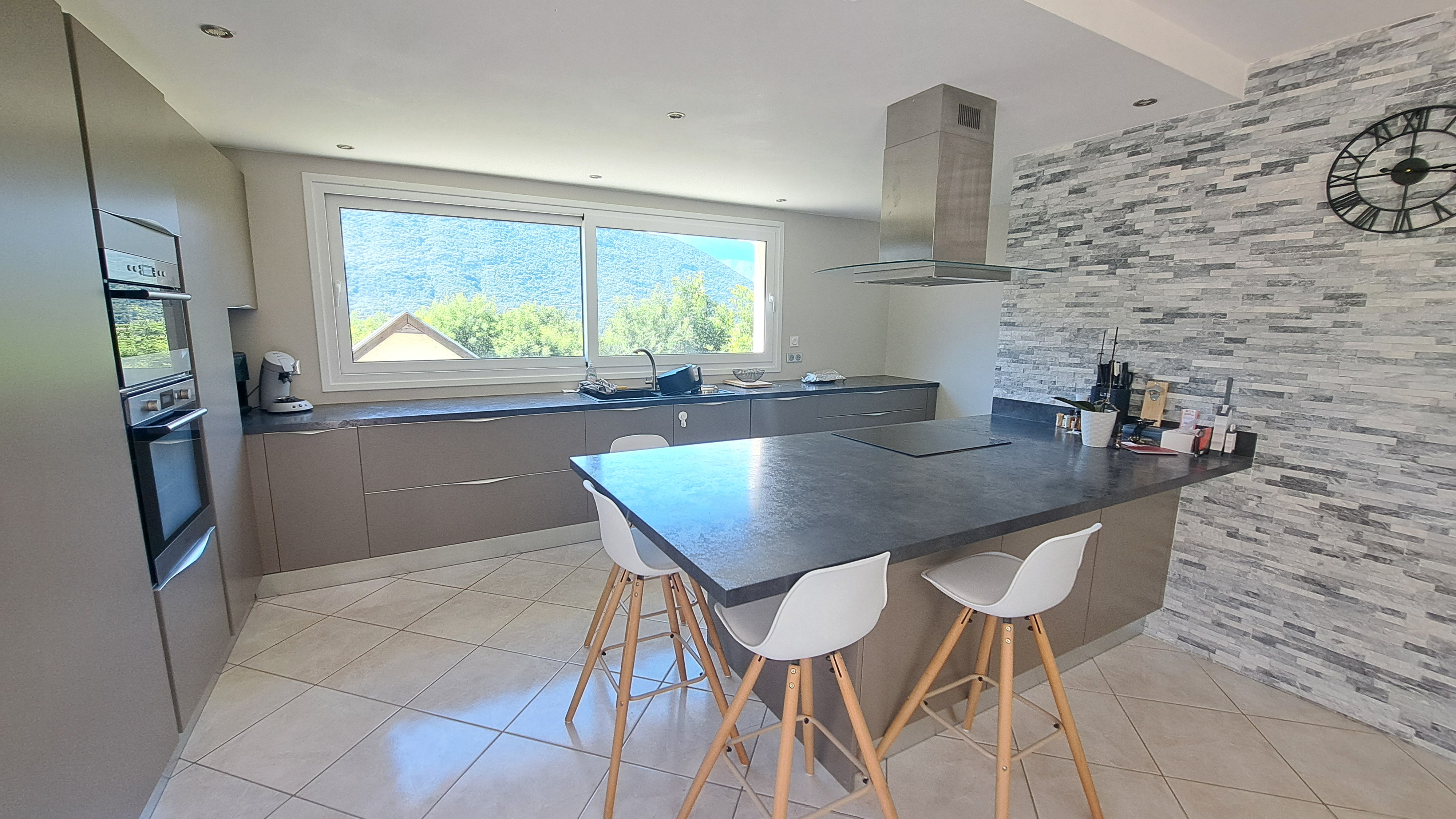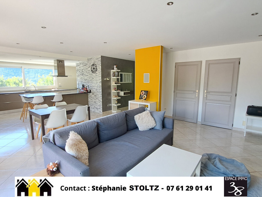 Espace Immo 38 - Stéphanie STOLTZ (o7 61 29 o1 41) et Patrice PARRA (o6 33 oo 31 73) vous proposent leur COUP DE COEUR sur la commune de Saint Georges de Commiers une très belle villa aux volumes généreux et prestations soignées avec une magnifique vue panoramique sur un terrain de 760 m² piscinable et 570 m2 de partie boisée escarpée.