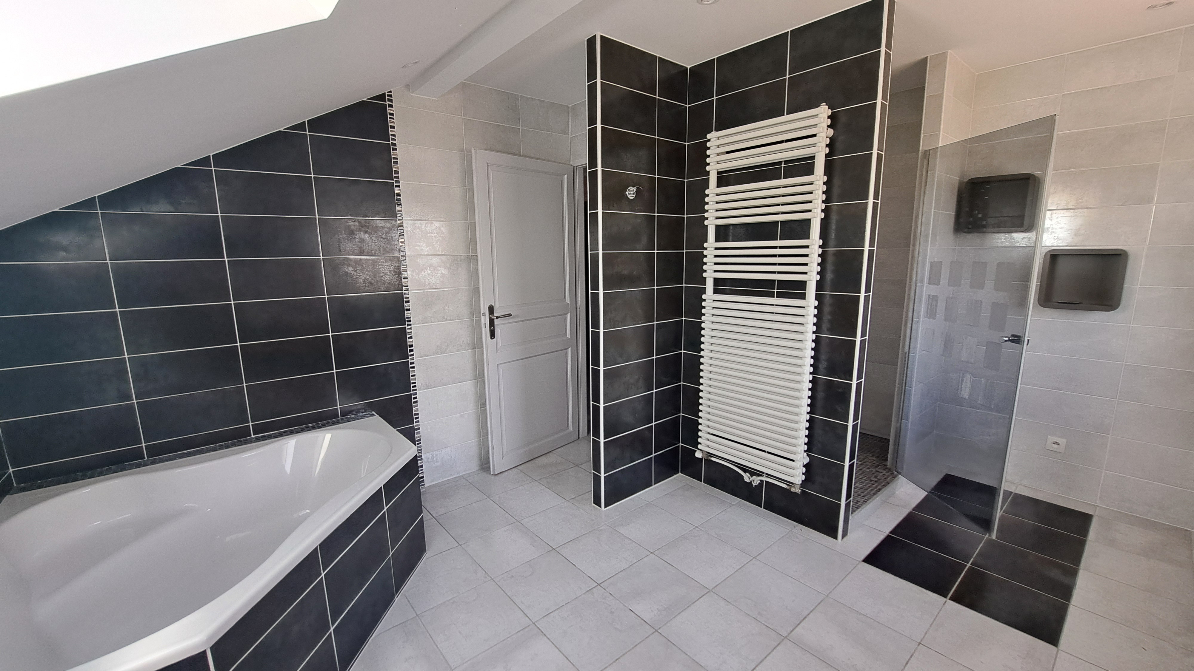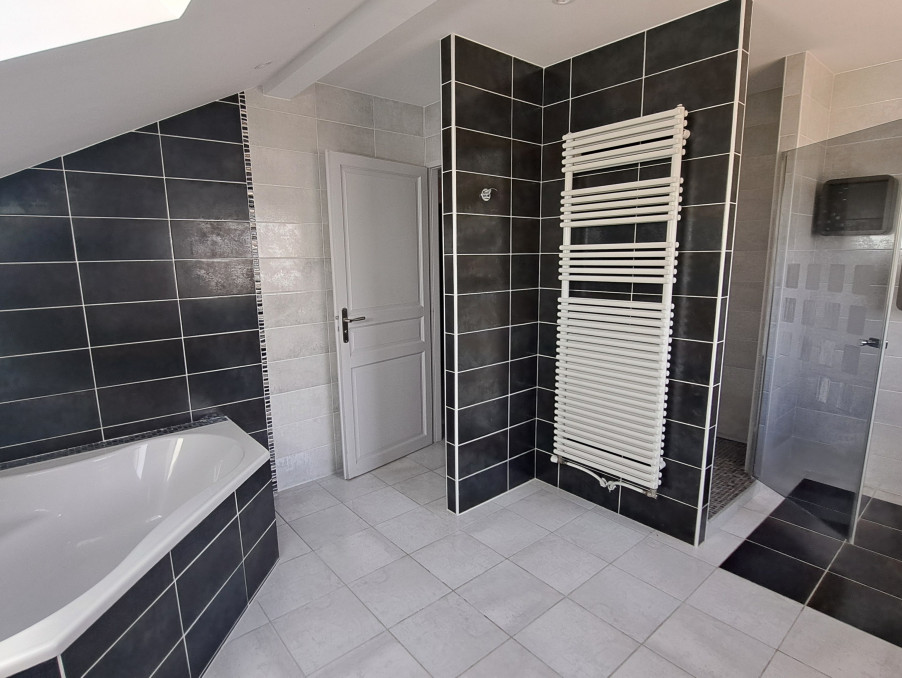 A l'étage bénéficiez de quatre belles chambres de 20/12/20 et 21 m² équipées de nombreux rangements avec accès jardin ou terrasse privative, une salle de bain très spacieuse de 14 m² avec baignoire, douche et double vasque et un WC séparé.