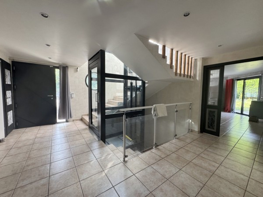 Cette habitation offre au rez-de-chaussée : un hall d'entrée de 20m² intégrant un ascenseur, une cuisine aménagée de 23m², une salle à manger / séjour de 47m² mais aussi deux chambres de 16m² et 13m², ainsi qu'une salle d'eau et des toilettes. Au niveau supérieur, on découvre quatre chambres, une salle de bain, des toilettes et un dressing.