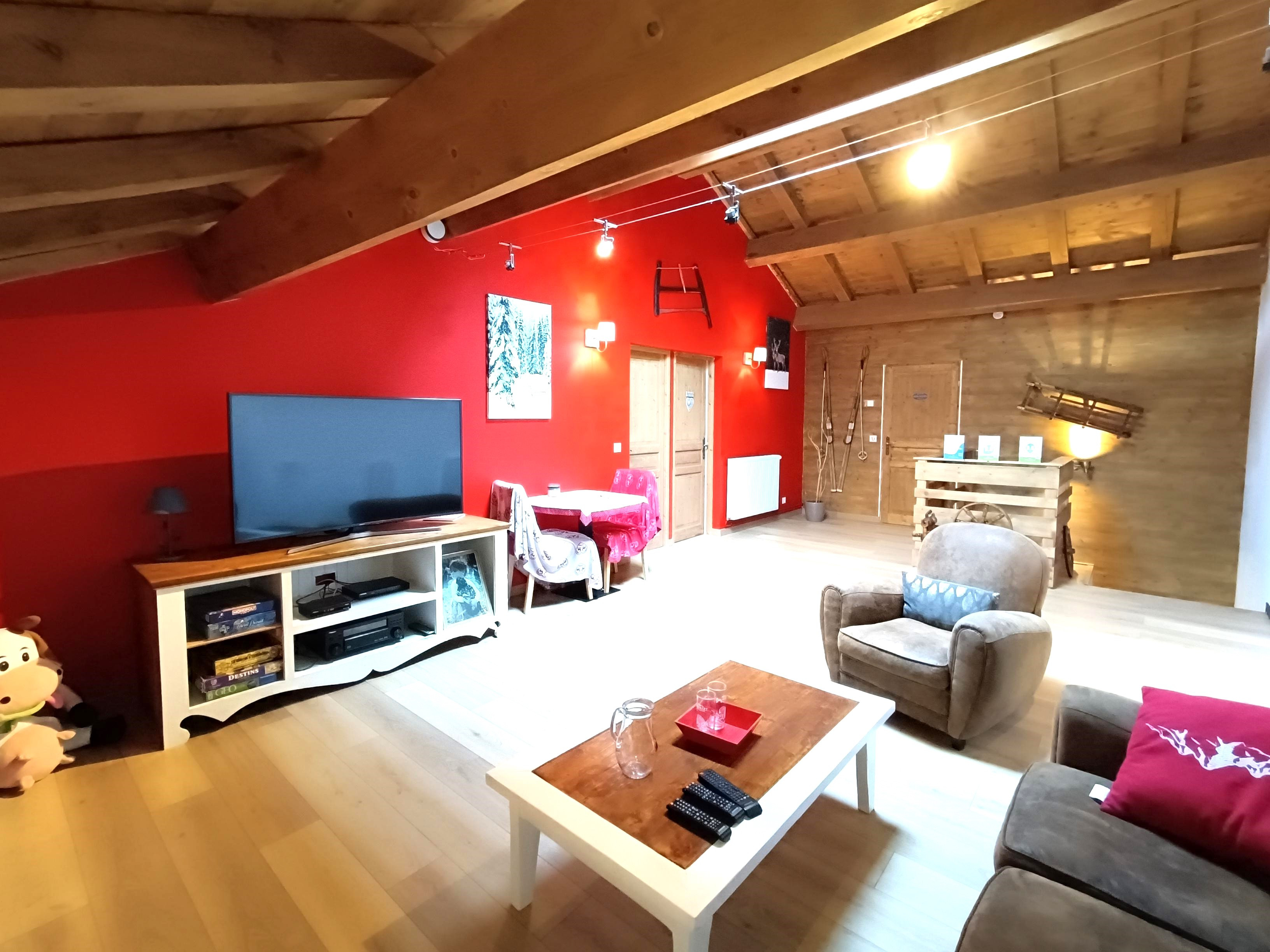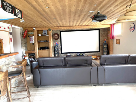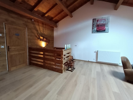 A l'étage, vous trouverez un grand salon, une belle salle de bain avec wc et deux grandes chambres mansardées de plus de 22m2 chacune. Cet espace est actuellement exploité en chambres d'hôtes labellisées " Inspiration Vercors "