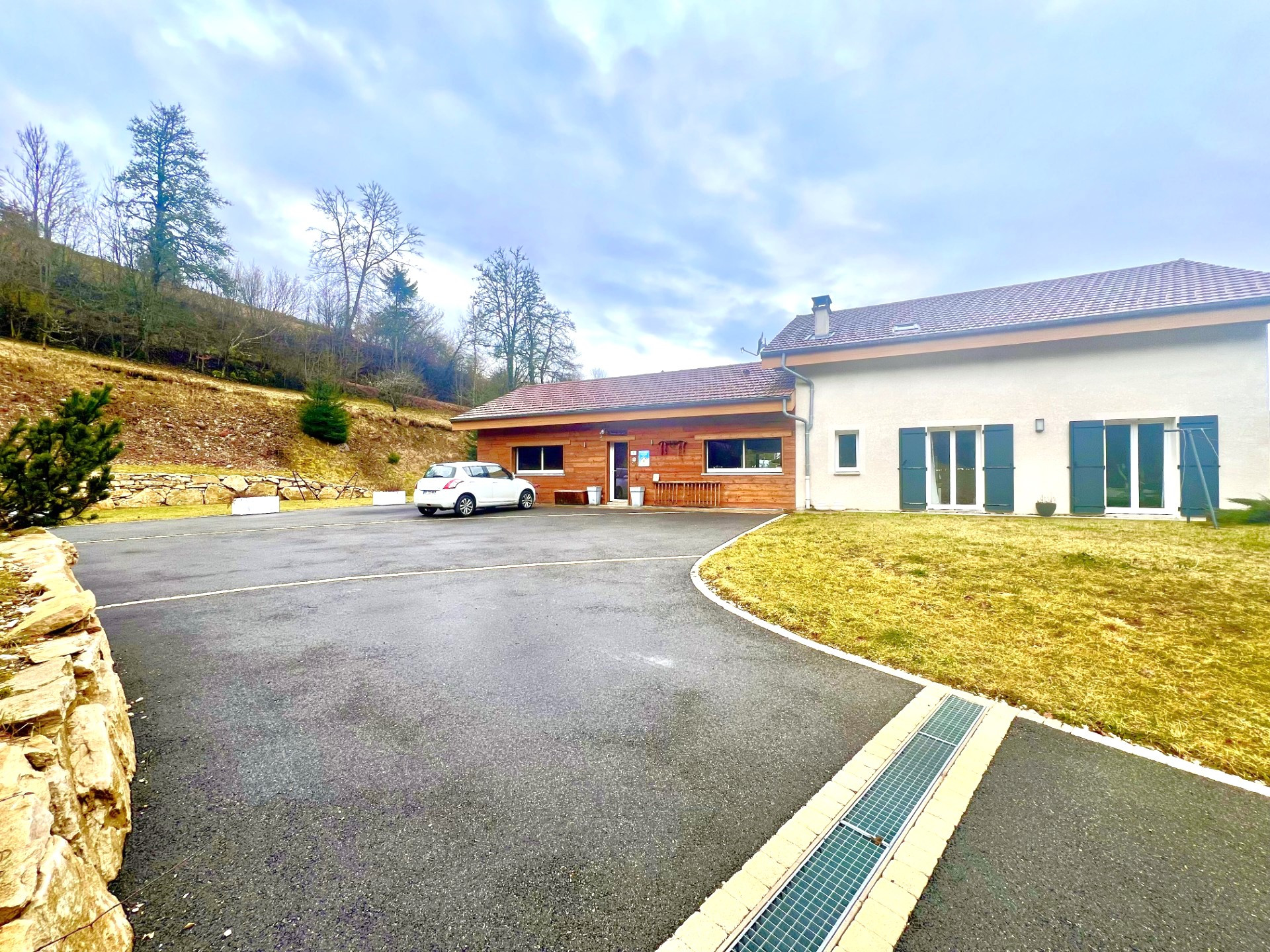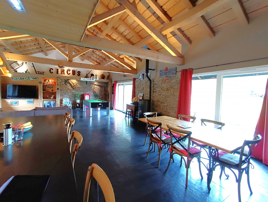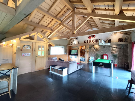 D'une surface de 303 m2 habitables et 341 m2 au sol, cette maison est située dans un petit hameau très calme avec une belle situation dominante et une exposition Sud-Ouest.