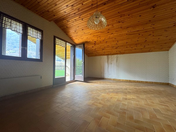 Cette maison individuelle est située à proximité du lac de Valbonnais, sur un terrain de 1045m². Cette maison de 203m² d'espace habitable propose au rez-de-chaussée : une cuisine qui donne sur la salle à manger, deux espaces de séjour (un de petite taille et un de grande taille), un bureau, une terrasse, une salle d'eau et des toilettes. Au niveau supérieur : on trouve six chambres, dont deux disposant d'un balcon et une autre dotée d'une terrasse, ainsi qu'une salle de bain et des toilettes séparées. Cela inclut un atelier, une cave et un double garage.
