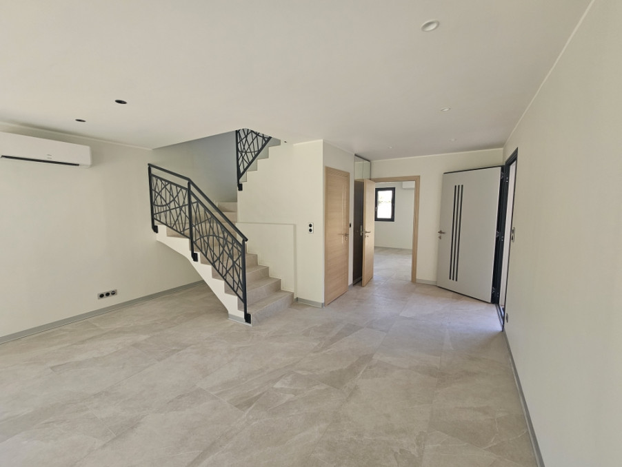 Composée au rdc d'une entrée donnant sur belle pièce de vie ouverte avec cuisine toute équipée, une chambre avec placard intégré et salle d'eau + toilettes, des 2nd toilettes séparés + accès au garage avec porte motorisé.