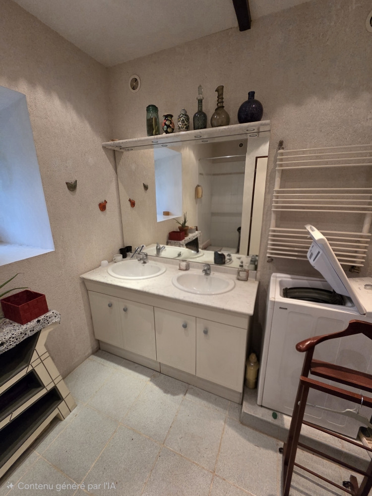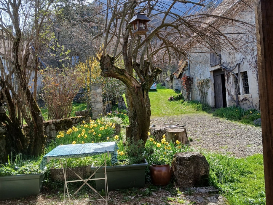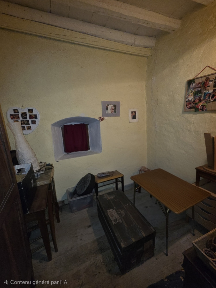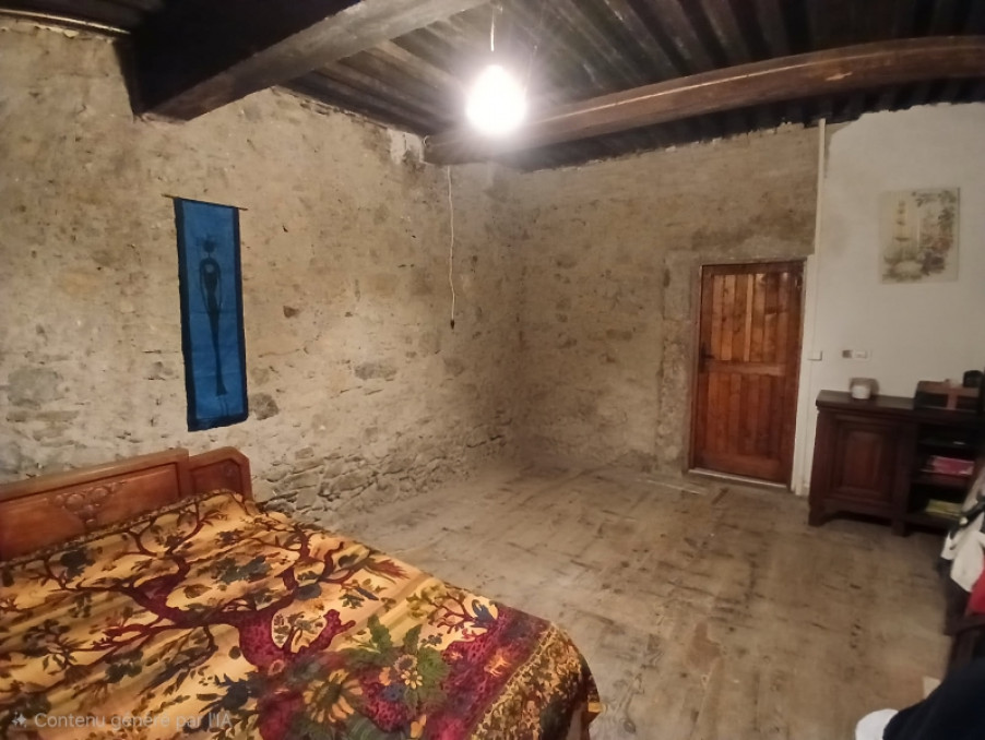 La maison se compose au rdc d'une belle pièce de vie ouverte sur cuisine 43m² avec poêle à bois, une cave voûtée, 1 bureau, une chambre avec une salle d'eau et des toilettes.